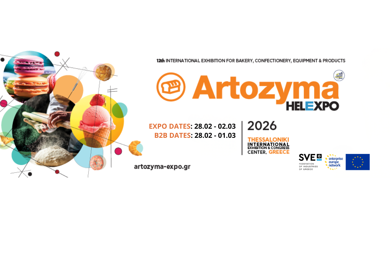 Στο πλαίσιο της έκθεσης ARTOZYMA, ο Σύνδεσμος Βιομηχανιών Ελλάδος (ΣΒΕ) μέλος του δικτύου Enterprise Europe Network – Hellas, σε συνεργασία με την TIF – HELEXPO διοργανώνει Διεθνή Εκδήλωση Επιχειρηματικών Συναντήσεων (Β2Β), το Σάββατο 28 Φεβρουαρίου (11:20 – 14:30 & 15:00 – 18:00) και την Κυριακή 01 Μαρτίου 2026 (11:20 – 13:30), στα Περίπτερα 13 & 15, εντός του εκθεσιακού χώρου της ΔΕΘ, στη Θεσσαλονίκη.