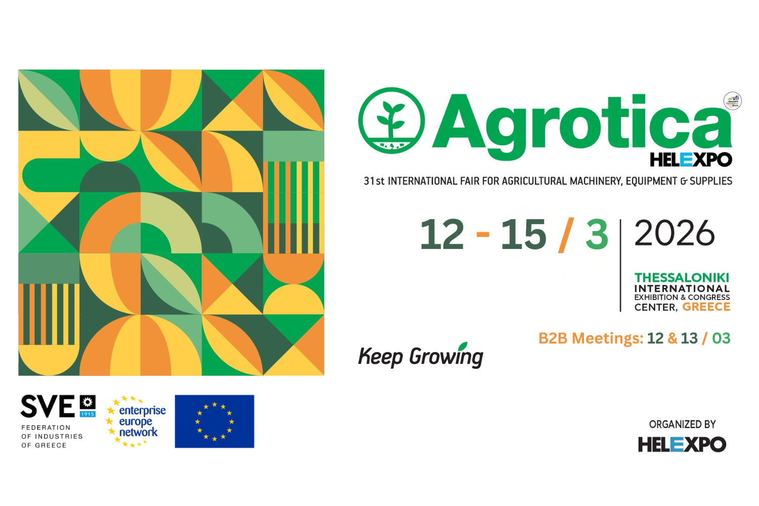 Στο πλαίσιο της AGROTICA, της μεγαλύτερης αγροτικής έκθεσης στην Ελλάδα και μίας από τις σημαντικότερες στην Ευρώπη, ο Σύνδεσμος Βιομηχανιών Ελλάδος (ΣΒΕ), μέλος του δικτύου Enterprise Europe Network – Hellas, σε συνεργασία με τη HELEXPO, διοργανώνει Διεθνή Εκδήλωση Επιχειρηματικών Συναντήσεων (B2B).