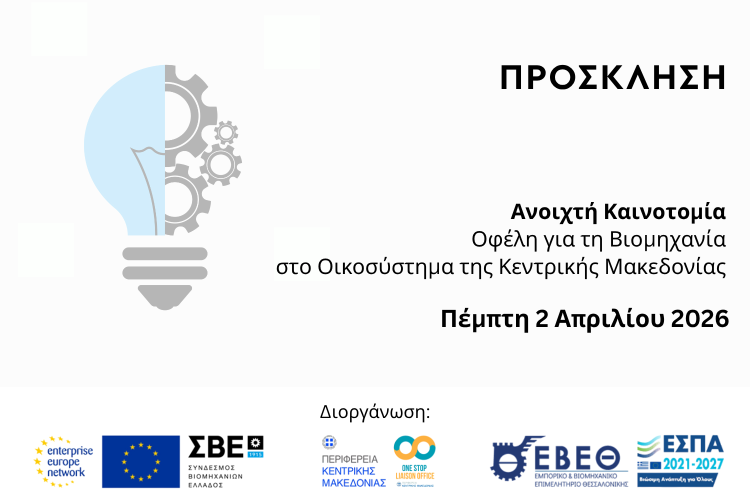 Πρόσκληση | Ανοιχτή Καινοτομία: Οφέλη για τη Βιομηχανία στο Οικοσύστημα της Κεντρικής Μακεδονίας