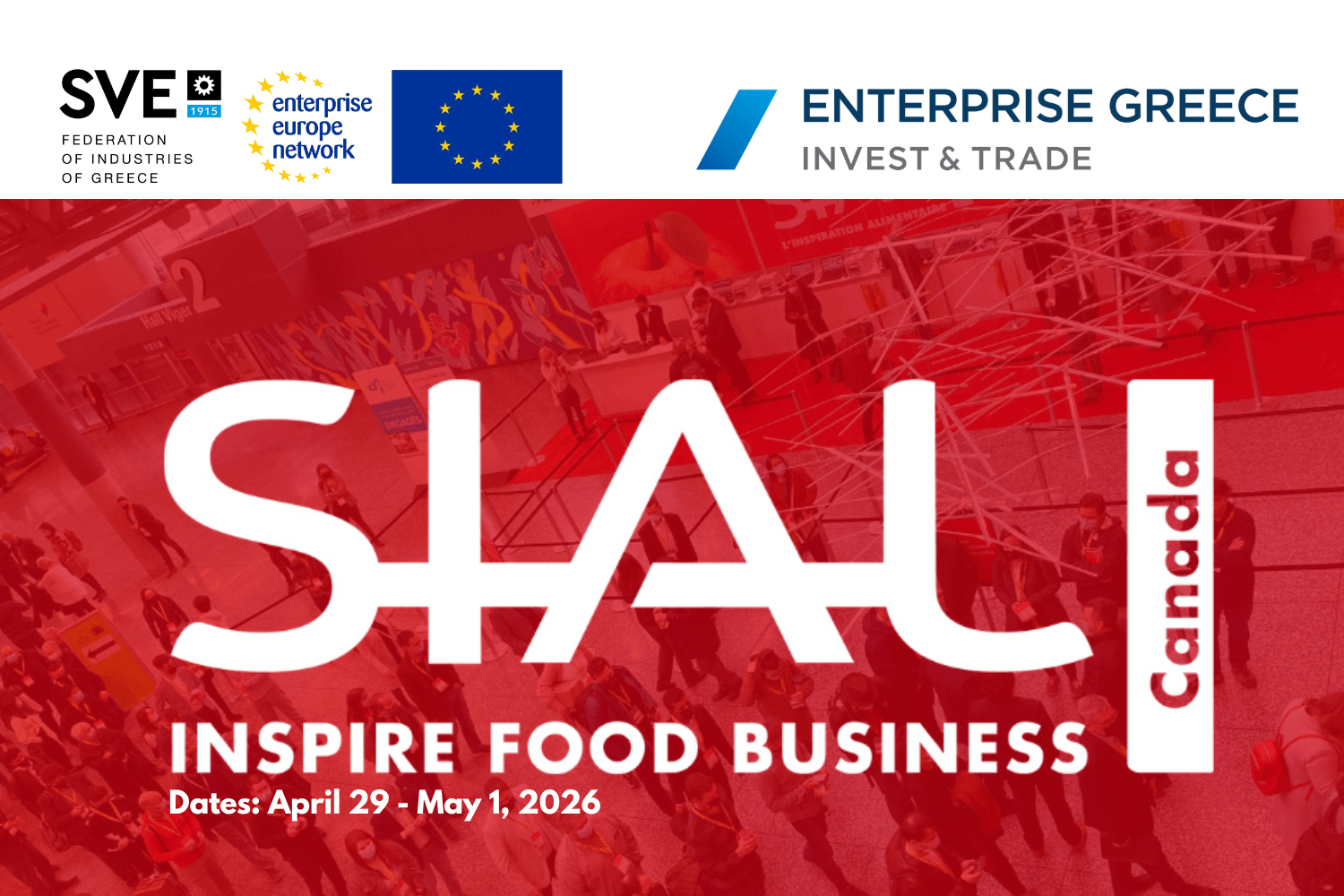 Ο Σύνδεσμος Βιομηχανιών Ελλάδος (ΣΒΕ) μέλος του δικτύου Εnterprise Europe Νetwork σας προσκαλεί να συμμετάσχετε ως εκθέτες στο Εθνικό Περίπτερο της Enterprise Greece στη SIAL Canada 2026. Η έκθεση θα πραγματοποιηθεί από 29 Απριλίου έως 1 Μαΐου 2026 και αποτελεί μία από τις σημαντικότερες εκθέσεις τροφίμων & ποτών στη Βόρεια Αμερική. Η συμμετοχή προσφέρει άμεση πρόσβαση στην απαιτητική αγορά του Καναδά και των ΗΠΑ, καθώς και δυνατότητα δικτύωσης με κορυφαίους αγοραστές, διανομείς και πωλητές λιανικής.