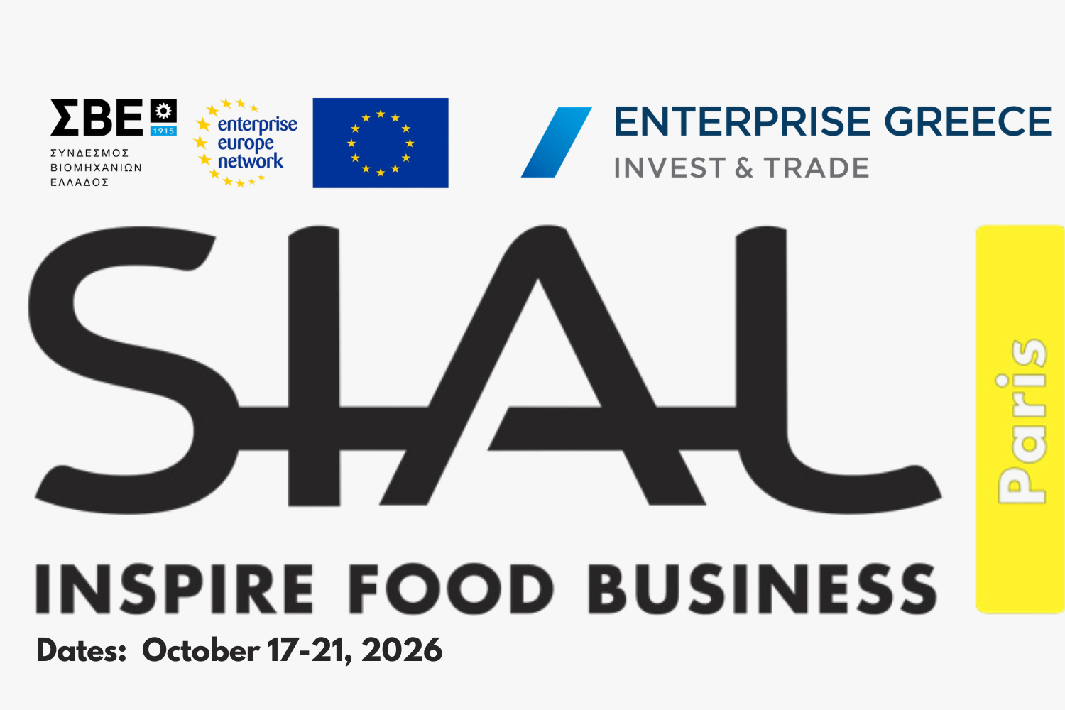 Ο Σύνδεσμος Βιομηχανιών Ελλάδος (ΣΒΕ) μέλος του δικτύου Εnterprise Europe Νetwork σας προσκαλεί να συμμετάσχετε ως εκθέτες στο Εθνικό Περίπτερο της Enterprise Greece στη διεθνή έκθεση SIAL PARIS 2026.
